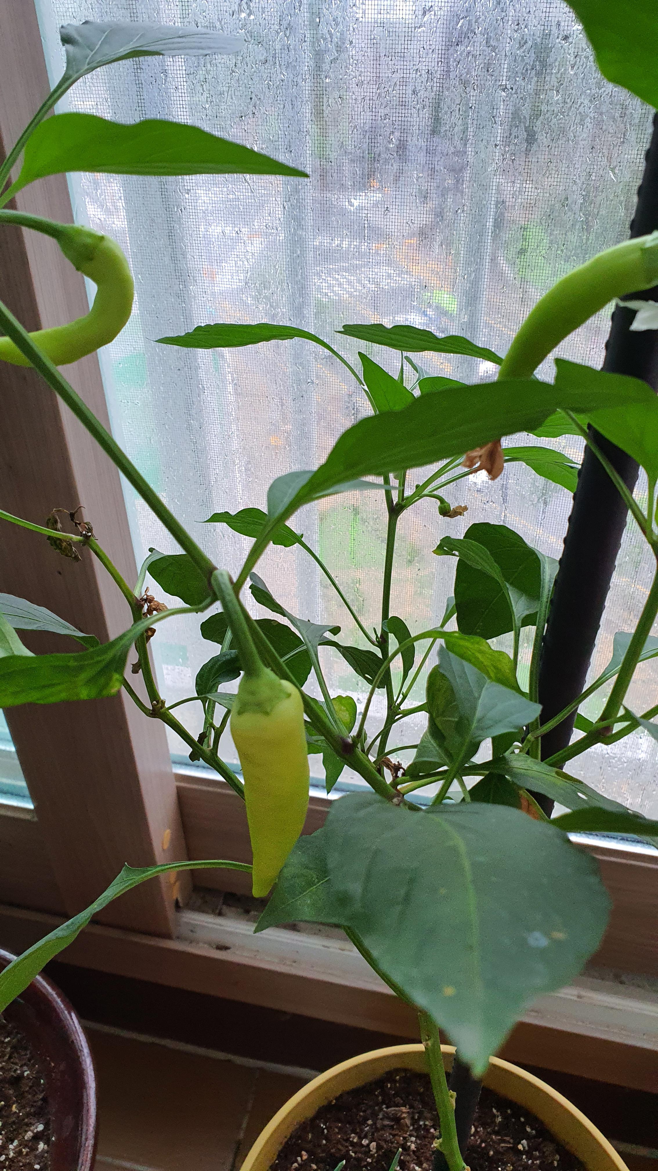 고추는 원래 줄기에 제일 처음 달린 열매를 따주어야 위로 다른 고추들이 열린다. 첫 열매를 따주지 않으면 그 녀석을 키우느라 다른 열매를 키우지 않는 것이다. 색도 예뻐서 몇번을 망설이다가 과감하게 녀석을 따주었더니 지금은 여기저기 꽃피고 열매 맺고 난리가 났다. 아직 먹어보지는 않았는데.. 맛도 궁금하다.