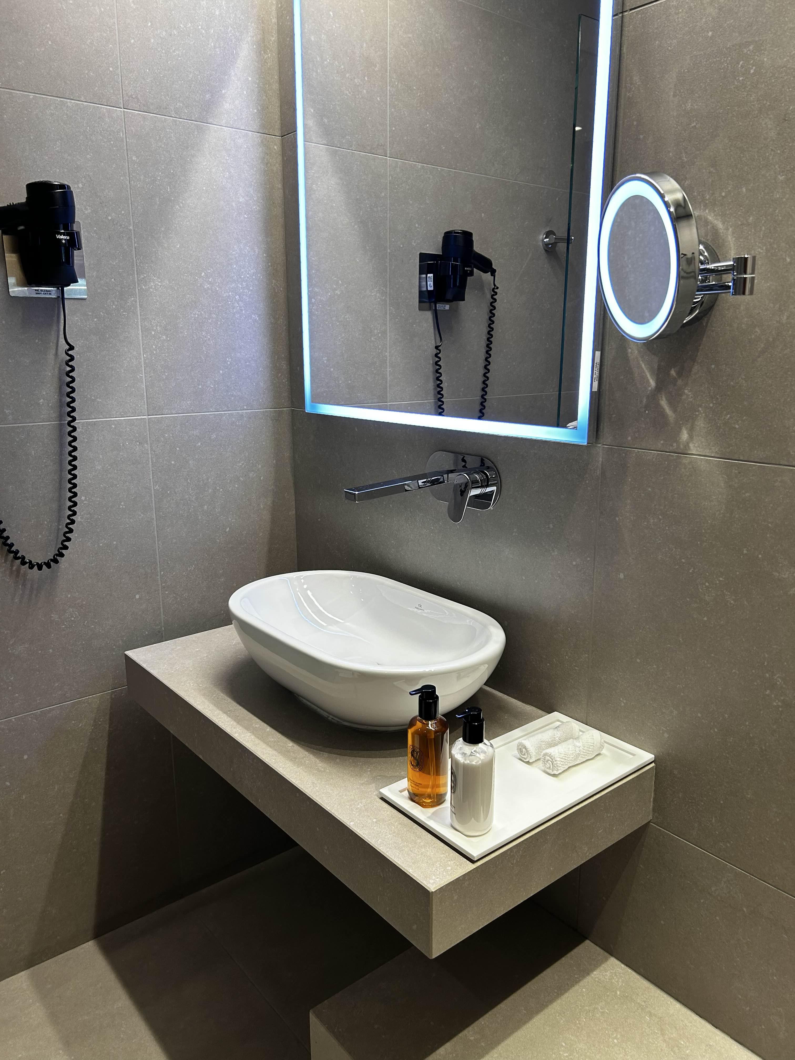 도하에서는 같은 라운지를 갔는데 이번에는 VIP 당첨이 안되어서 일반 라운지를 이용했다. 샤워실도 무료로 사용할 수 있었는데 이때 지난번 VIP 라운지가 엄청 좋은 것이었다는 것을 알게 되었다. 이 샤워실이 안좋다는것은 아니고, 여기는 그냥 샤워부스 하나만 달랑있었고, (어메니티는 여기도 다 딥티크 였음) 헤어드라이기가 없길래 메이드 분에게 물어봤더니 자기네 서있는 자리에 콘센트에다 드라이를 꽃아주었다. 거울도 없이 서서 머리 말리는 요상한 상황... 이건 좀 별로...